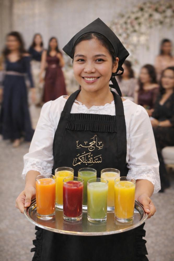 استمتعوا بتجربة ضيافة مميزة مع مريلة ضيافة منزلية التي تتميز بخامة عالية الجودة مصنوعة من القماش الإندونيسي الفاخر. تمتد المريلة من الصدر حتى ما تحت الركبة لتوفير حماية مثالية خلال تحضير الوجبات. واحدة من أبرز ميزاتنا هي التطريز المصمم حسب رغبة العميل، مما يتيح لكم إضافة لمسة شخصية بفضل العبارات أو الشعارات الخاصة بكم. لدينا خيارات تطريز متعددة تشمل خيط الحرير أو الـقصب اللماع لتحسين إطلالة المريلة. هذه المريلة ليست مجرد قطعة ملابس بل تعتبر عنصراً أساسياً لتعزيز تجربتكم في تقديم الضيافة وتضفي لمسة راقية على كل اجتماع منزلي.